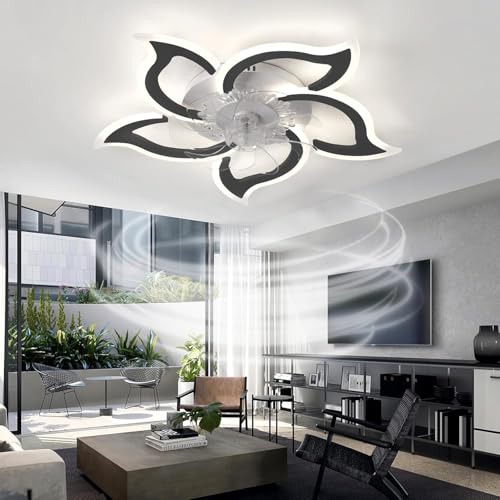 GaoHX Ventilateur Plafond avec Lumiere, Ventilateurs de Plafond Modernes à Dimmable, Réversible, Silencieux, 6 Vitesse, Créatif Forme de Fleur Plafonnier avec Ventilateur pour Salon(Black,5 Lights)