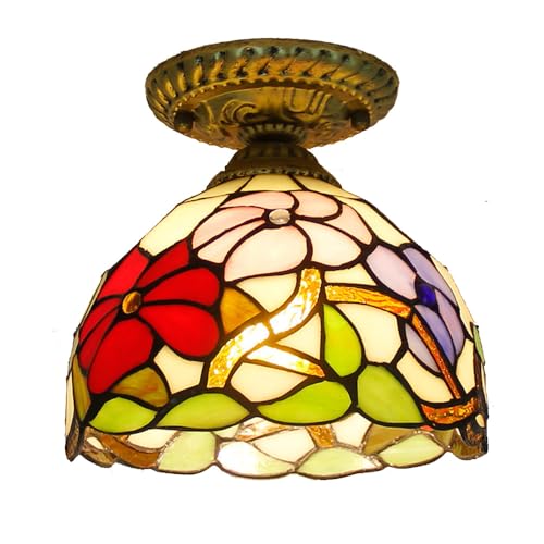 Mengjay Plafonnier Pastoral, Lampe De Plafond En Vitrail Vintage,Plafonnier Cuisine avec Abat-Jour en Verre Coloré Encastré Lumiere Plafond Retro pour Salon Salle de Bain Bar Couloir Éclairage (C)