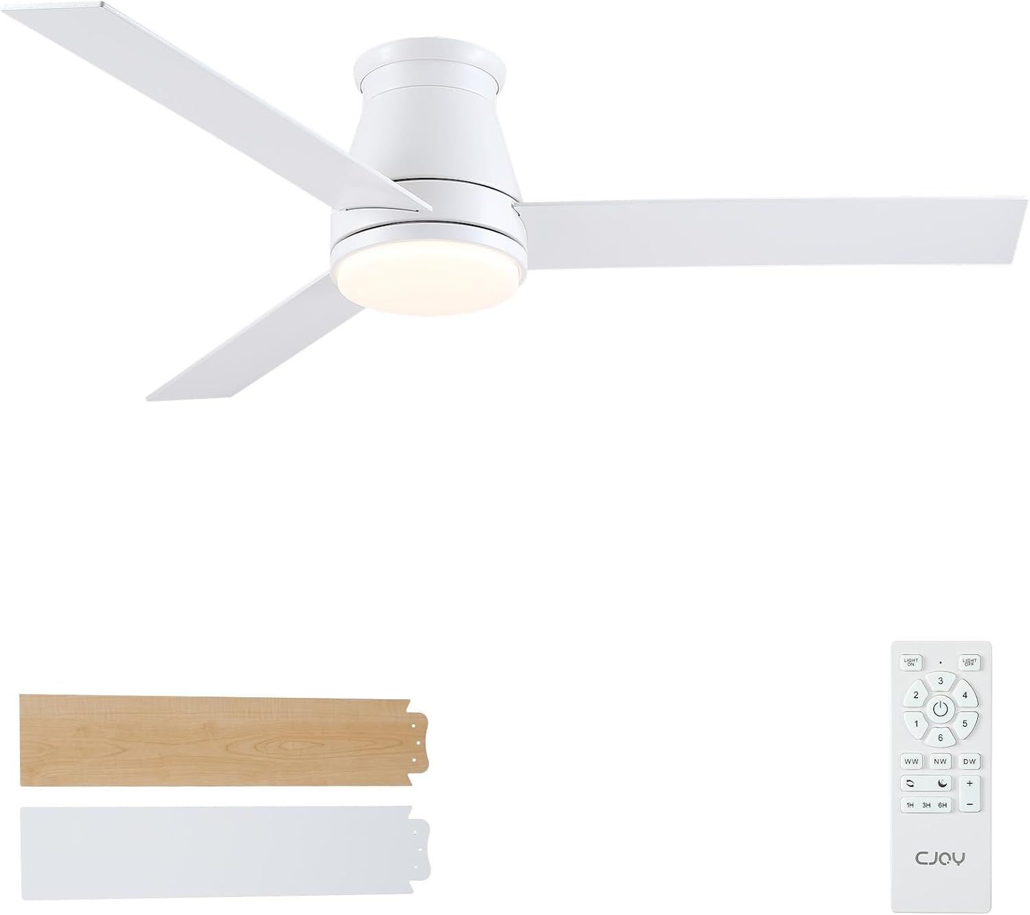 CJOY Ventilateur Plafond avec Lumiere, 132cm Ventilateur Plafond Silencieux avec Telecommande, 6 Vitesses, 3 CCT Dimmable, Silencieux Réversibles CC, Mémoire Fonction, Montage Encastré, Bicolore