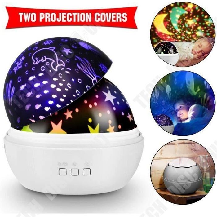 TD® Led Veilleuse Enfant Etoile Projection Colorée Rotation Lampe Projecteur Lumiere Plafond Cadeau pour Bébé Anniversaire Noël -