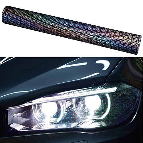 XhuangTech Film teinté pour lumière de voiture avec effet holographique arc-en-ciel - Film autocollant à changement de couleur pour phare arrière (noir, 30 x 100 cm)
