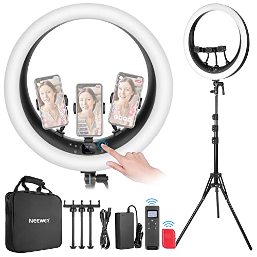 NEEWER 19" Ring Light,Lumière Anneau avec 3 Supports Téléphone,Contrôle 2.4G Amélioré Gradation Lisse à 1%,LCD et Contrôle Tactile,CRI 97+ 2540lux,pour Streaming Home Office Zoom Call- RP18H