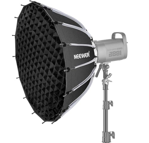 NEEWER Basics Kit Softbox Parabolique, 65cm, Monture Bowens, avec Diffuseurs de Lumière, pour Studio Photo, Enregistrement Vidéo, Streaming, éclairage, Compatible Godox, Aputure, NS37P