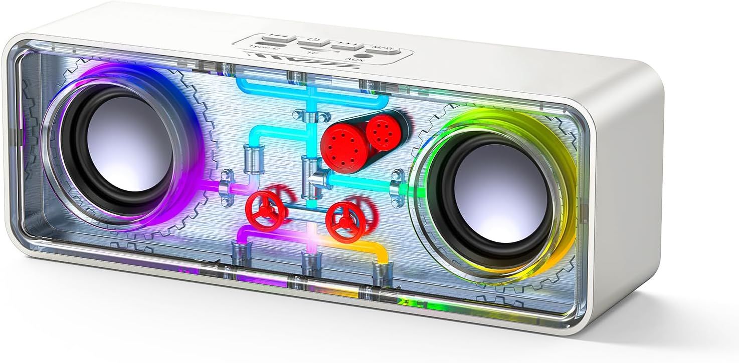 Haut-Parleur Bluetooth Portable Sans Fil Avec Design Mecha Transparent, Lumière De Streaming, Son Stéréo Tws,Carte Tf,Aux, Haut-Parleur Extérieur Pour Fête, Camping,Plage,Voyage,Randonnée,Blanc