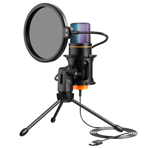 Hoppac USB Microphone, Micro PC Micro Gaming avec Trépied et Filtre Anti-Pop, Micro Gamer à Condensateur pour Podcasting, Streaming, avec lumière RGB, pour PC, PS4/5, Mac, Windows