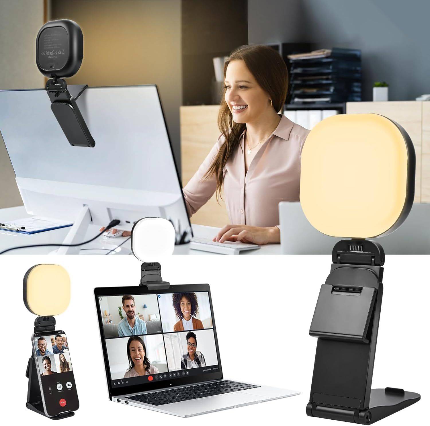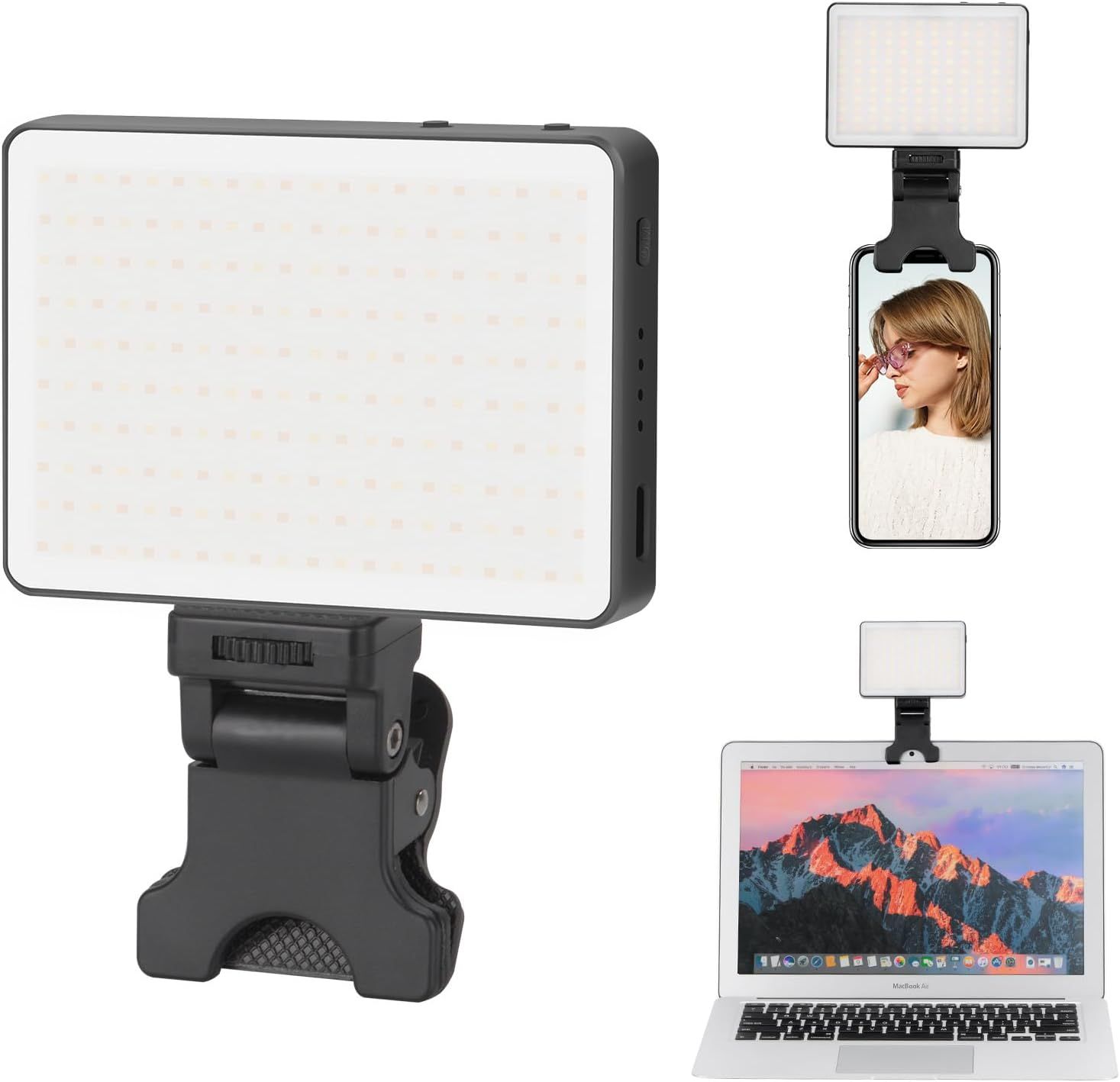 Alipis Lampe Selfie LED Portable à Pince Éclairage Vidéo LED Réglable Mini Lampe pour Téléphone et Ordinateur Lumière pour Visioconférence Streaming Photographie en Intérieur