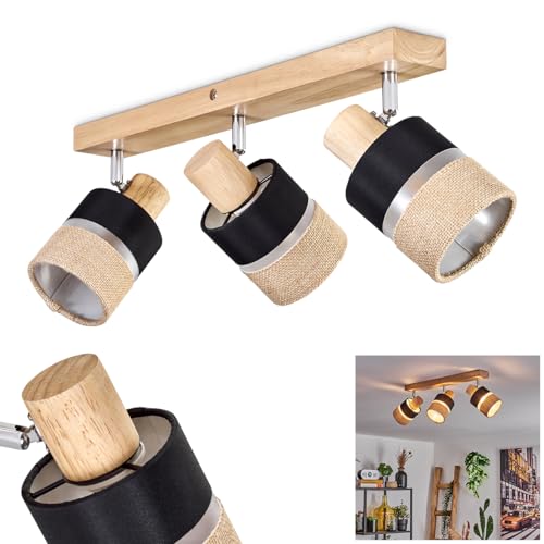 hofstein Plafonnier Fallhagen, plafonnier moderne en bois/métal/lin dans les coloris naturel/chrome/noir, luminaire à 3 ampoules au design scandinave avec spots réglables, 3 x E14, sans ampoules