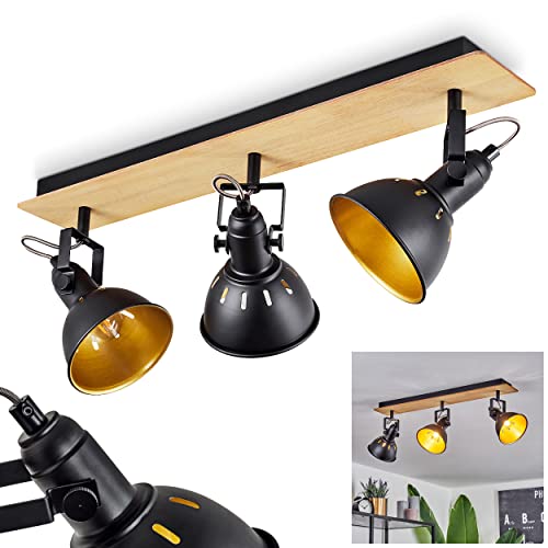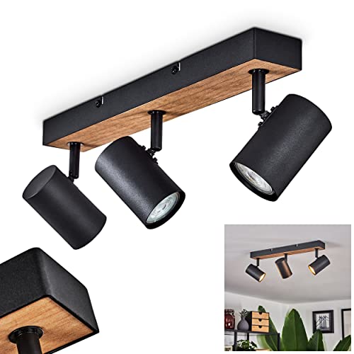 HOFSTEIN Plafonnier Javel, plafonnier moderne en métal/MDF noir/brun/imitation bois, luminaire moderne avec spots orientables, 3 flammes, 3 x GU10, sans ampoules