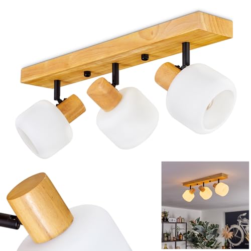 hofstein Plafonnier Miguas, plafonnier moderne en bois/métal/verre dans les tons naturels/noir/blanc, luminaire à 3 ampoules au design scandinave avec spots réglables, 3 x E14, sans ampoules