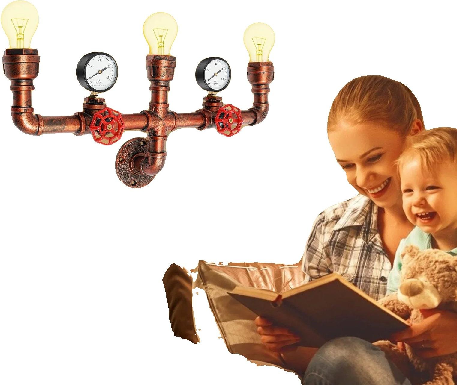 Applique murale, style industriel rétro, luminaire à 3 ampoules, rouge rouille