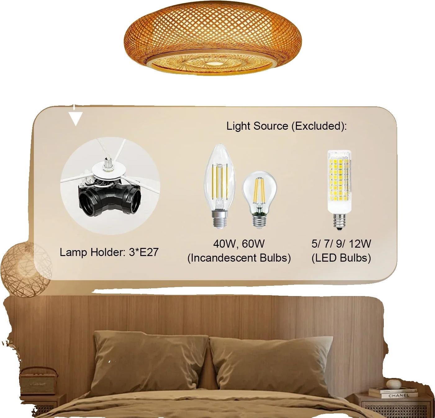Suspension, design rustique en bambou, luminaire à 3 ampoules, 50 cm