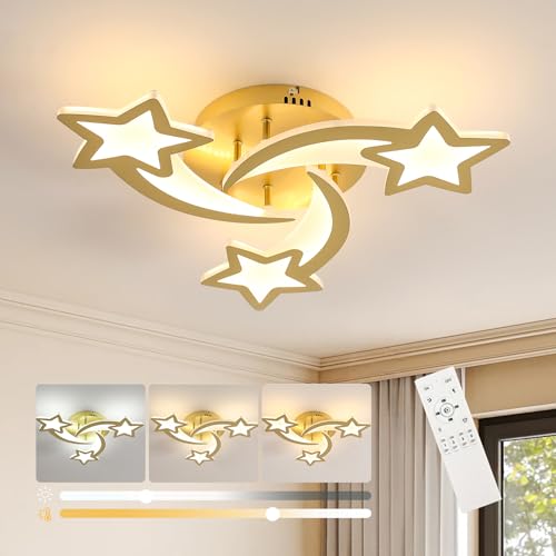 Goeco Plafonnier LED Dimmable, 30W 3000K-6500K Lampe de Plafond avec Télécommande, Créatif Étoile Design Luminaire Plafonnier Moderne Pour Chambre À Coucher Salon Salle À Manger Chambre D'enfant, Doré
