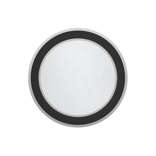 Eglo Plafonnier LED Macchioni, lampe de plafond cristal avec télécommande, luminaire à intensité variable, éclairage de bureau en métal et plastique noir, blanc chaud - froid, ⌀ 38 cm