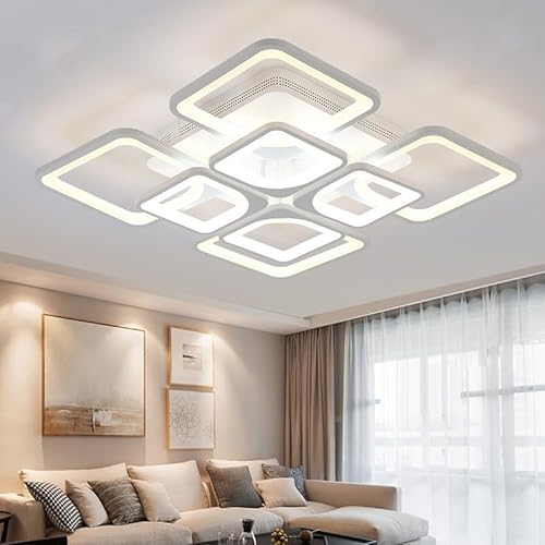 Comely Plafonnier LED Dimmable, Blanc 5 Carré 57W 6400LM Lampe de Plafond LED avec Télécommande 3000K-6500K, Luminaire Plafonnier Moderne pour Salon, Chambre, Salle à Manger