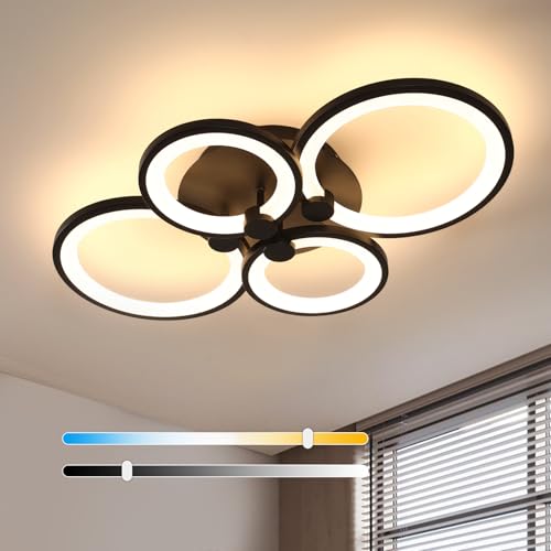 Comely Plafonnier LED 28W 3200LM, Noir Luminaire LED Salon Dimmable avec Télécommande 3000K-6500K, Éclairage de Plafond pour Chambre, Salle à Manger, Cuisine