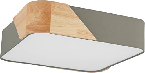 Eglo Plafonnier Grimaldino à 2 flammes, luminaire en saillie en textile, bois, métal et plastique taupe, lampe de plafond pour salon, chambre à coucher et couloir, douille E27, 41,5 cm