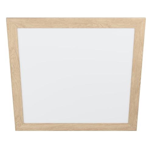 Eglo Luminaire plafonnier Piglionasso, panneau LED avec encadrement en bois clair, lampe de plafond pour cuisine, bureau et couloir, blanc neutre, 64,5 cm