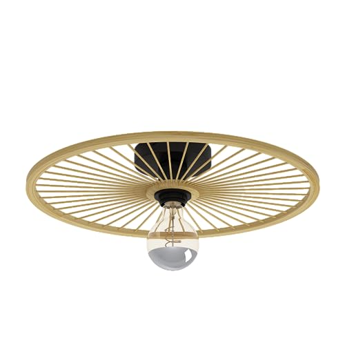 EGLO Luminaire plafonnier Leominster, lampe de plafond ronde pour salon et couloir, métal noir et bambou naturel, douille E27, Ø 45 cm