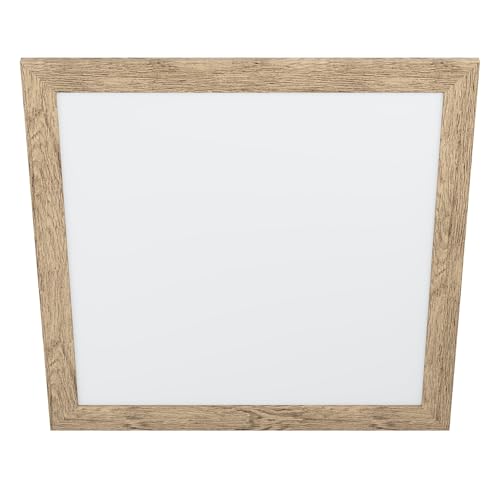 Eglo Luminaire plafonnier Piglionasso, panneau LED avec encadrement en bois flammé brun clair, lampe de plafond pour cuisine, bureau et couloir, blanc neutre, 64,5 cm