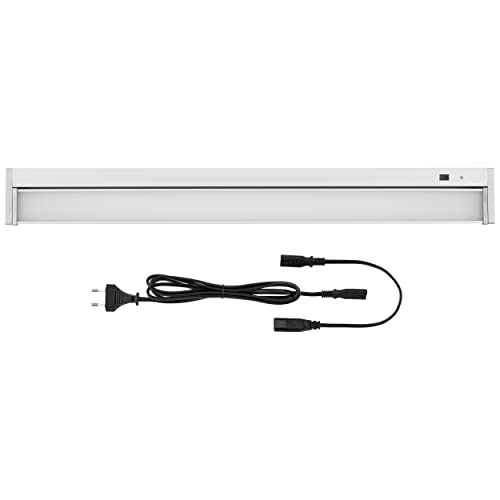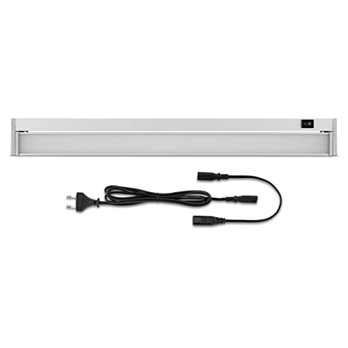B.K.Licht - Lumière cuisine sous meuble avec interrupteur marche/arrêt, couleur de lumière blanc chaud, câble de connexion inclus, éclairage LED cuisine sous meuble, 57,5x4,9x1,3 cm, blanc-argenté