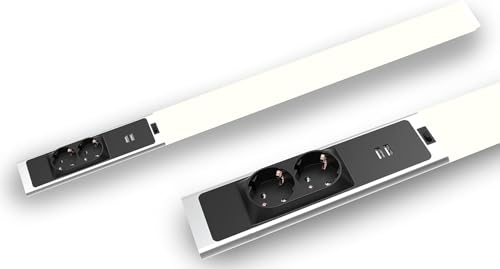 BOLD Éclairage sous meuble de cuisine LED (éclairage pour meuble bas) avec 2 prises et 2 ports USB-A (1500 lumens | 18 W | 4000k blanc neutre | IP20 | 80 cm de longueur), argent