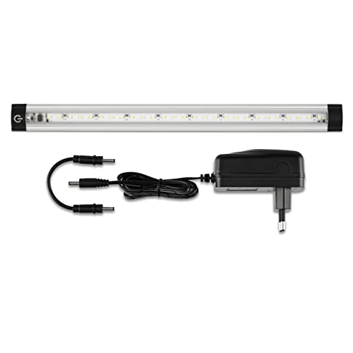 REV Éclairage sous meuble cuisine TS - Éclairage LED pour armoire avec capteur, 30 000 h, 3 W, 360 lm, 300 x 25 x 10 mm, argent
