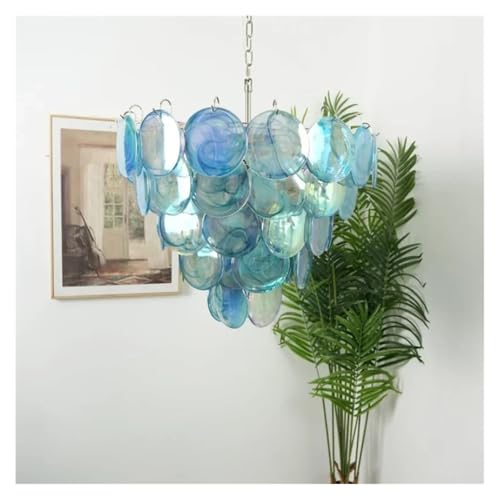 Générique Lustre, Lustre à disque multicolore en verre de Murano, luminaire suspendu d'ambiance française for salon, salle manger, éclairage décoration intérieure(Warm,BLUE_60CM H48CM)