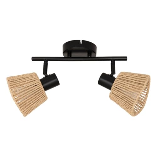 Atmosphera - Applique Murale Myha - Plaffonier 2 Spots Orientables en Papier Tressé - Ampoules Non Incluses E14 25W - Luminaire pour Entrée, Couloir, Salon