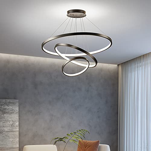 Moderne 66W LED 3 Anneaux Noir Suspension pour Salon Dimmable 3 Couleurs Lustre Lampe pour Table À Manger Luminaire Entrée Suspension Éclairage, Hauteur Réglable Présent