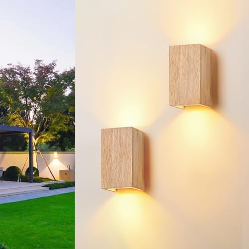 Doughelec Applique Murale LED Extérieure Intérieur 6W Bois, Éclairage Mural LED Imperméable IP65 Blanc Chaud 3000K, Lampe Murale Moderne Up Down Luminaire pour Escalier Entrée Terrasse Dangle, 2PCS