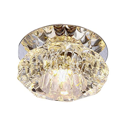 Plafonnier rond en cristal 3W/5W LED, éclairage encastré, plafonnier et applique murale pour vestibule, couloir, entrée, luminaire encastré pour hall d'entrée (lumière chaude 3000K) intéressant
