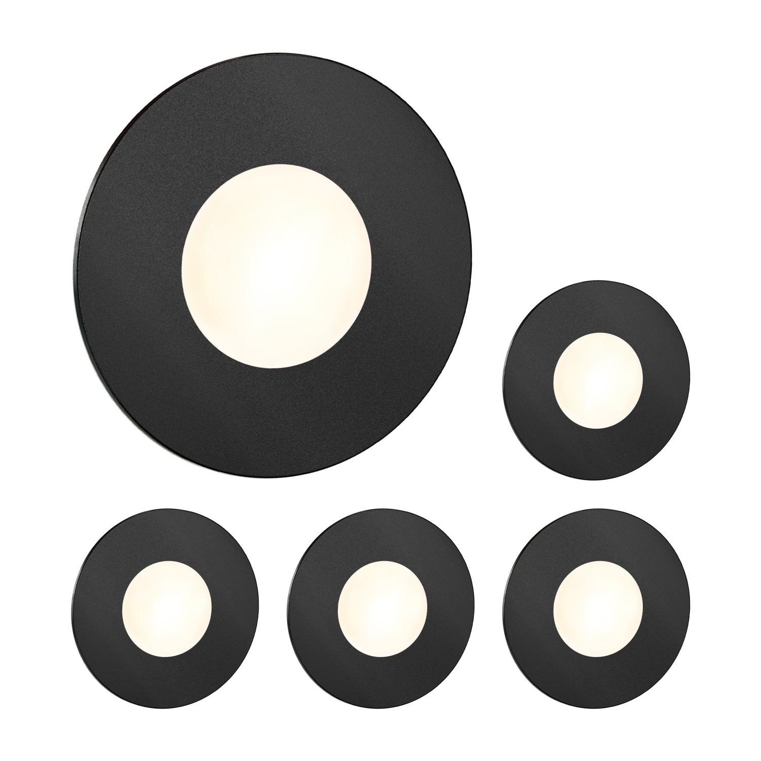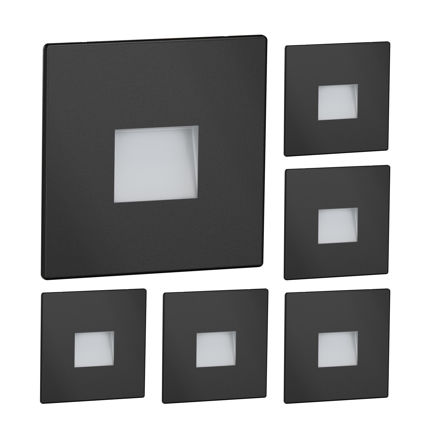 Letlit Eclairage D'escalier 5W 500lm 6-Pack, Luminaire LED 230V 3000K, Rond 85x85mm, IP65 Applique Encastrée, Luminaire D'escalier pour Escalier Mural, Douilles Encastrées 68mm, Aluminium Noir