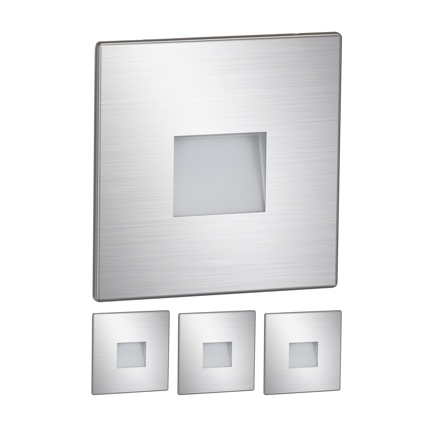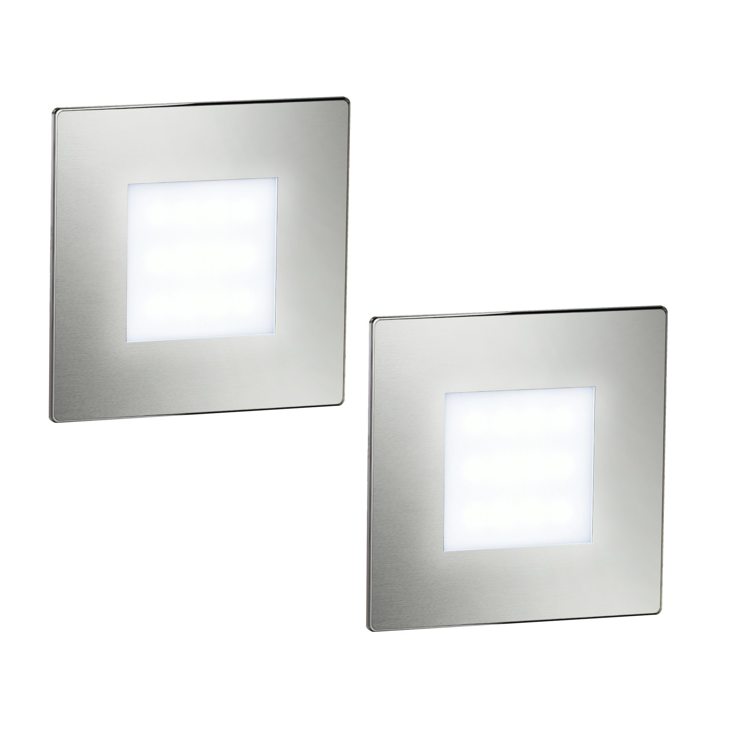 ledscom.de Luminaire d'escalier/encastré mural LED FOW pour l'intérieur et l'extérieur, downlight, carré, inox, 85 x 85mm, blanc chaud
