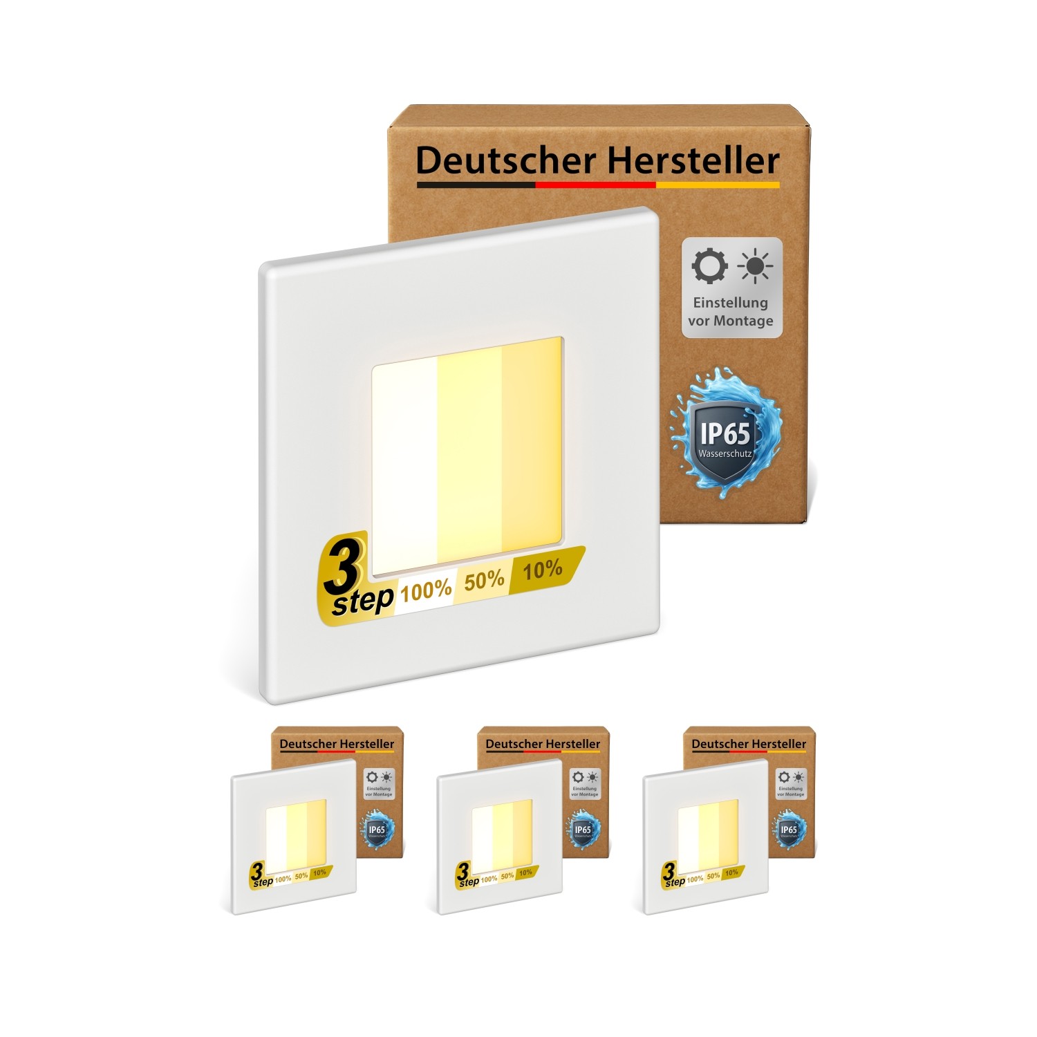 Letlit 6-Pack Eclairage Escalier 3W 300lm, Luminaire LED 230V 3000K, 85x85mm, IP65 Applique Encastrée, Luminaire D'escalier pour Escalier Mural, Douilles Encastrées 68mm, Aluminium Blanc