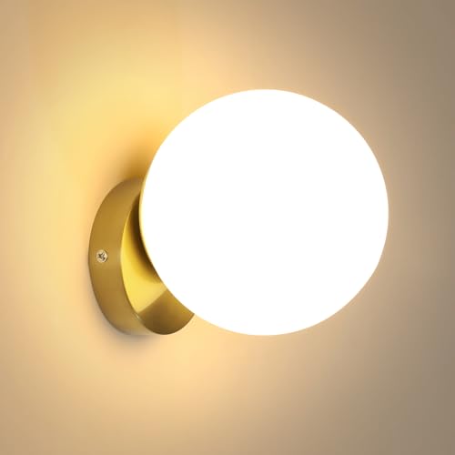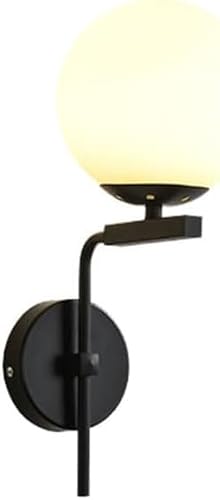 KKXXYQFC Appliques murales Applique Murale en Verre Rond Blanc à 1 lumière avec Abat-Jour Globe, luminaire à Tige incurvée rétro pour Salle de Bain, Chevet, Cuisine, Couloir, luminaire