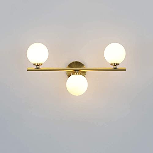 CMBSSTFC Appliques murales Applique Murale Globe Luminaire d'éclairage Applique Murale en métal doré du Milieu du siècle Applique Murale d'intérieur à 3 lumières décoratives Abat-Jour en Verre