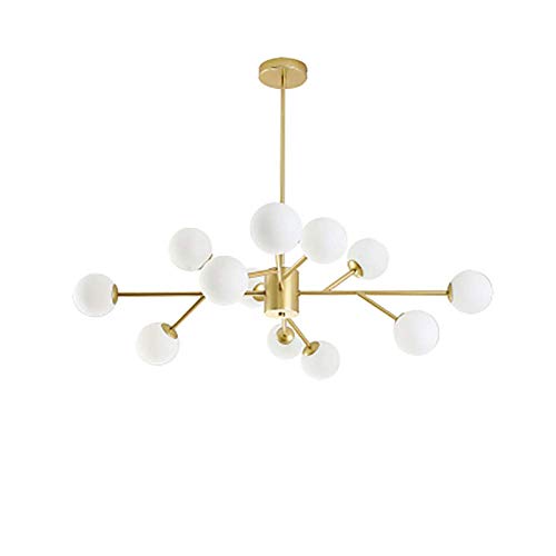 Lustre Moderne 15 lumières, Lustre d'éclairage du Milieu du siècle, luminaire Suspendu, Globe en Verre, plafonnier pour Salle à Manger, Salon, doré, 12 lumières