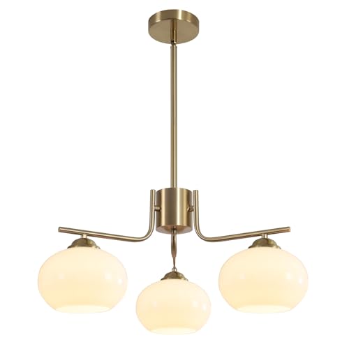 IDHBGJD Luminaire Suspendu Globe Moderne du Milieu du siècle, Lustre en Verre de Lait à 3 lumières, Lustre Spoutnik doré, luminaire Suspendu en Laiton brossé pour îlot de Cuisine (3 lumières)