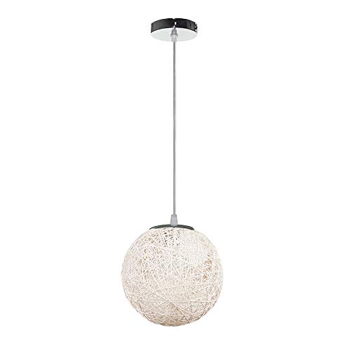 STOEX Rétro Suspension Luminaire en Rotin Globe Rond, Lustre Abat-jour DIY Lampe Plafond E27 pour Salon Restaurant Centre commercial Bar (Blanc, 20cm)