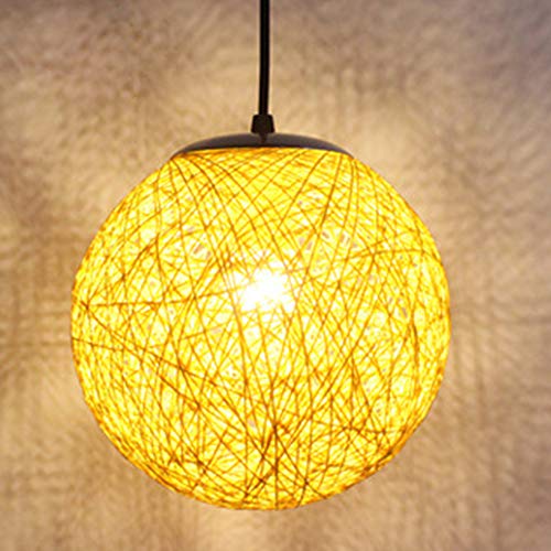 STOEX Rétro Suspension Luminaire en Rotin Globe Rond, Lustre Abat-jour DIY Lampe Plafond E27 pour Salon Restaurant Centre commercial Bar (Jaune, 15cm)