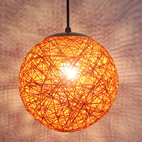 STOEX Rétro Suspension Luminaire en Rotin Globe Rond, Lustre Abat-jour DIY Lampe Plafond E27 pour Salon Restaurant Centre commercial Bar (Orange, 20cm)