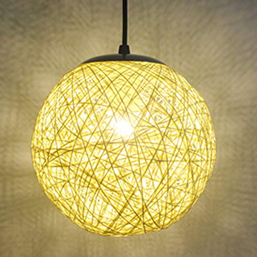 STOEX Rétro Suspension Luminaire en Rotin Globe Rond, Lustre Abat-jour DIY Lampe Plafond E27 pour Salon Restaurant Centre commercial Bar (Jaune, 20cm)