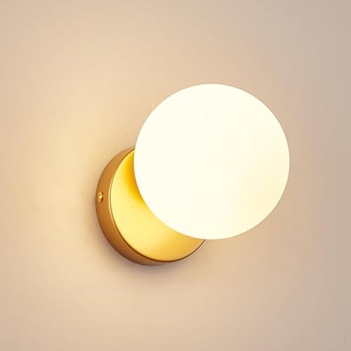 SIBEG Applique Murale sans Fil du Milieu du siècle, alimentée par Batterie, Lampe Murale d'intérieur Non câblée avec Abat-Jour en Verre Blanc Laiteux pour Chambre à Coucher, luminaire Mural Globe de