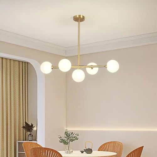 AJYBYUKJ Lustre Moderne en Laiton du Milieu du siècle avec Globes en Verre, luminaire Suspendu à 6 lumières pour îlot de Cuisine, 43x16 Pouces Beauty Comes