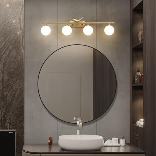 Applique Murale de Style Moderne du Milieu du siècle - Applique en Laiton à 2 Globes en Verre pour Salle de Bain, à Placer au-Dessus du Miroir, Verre opalin, élégant décor d'oiseaux, luminaire mu