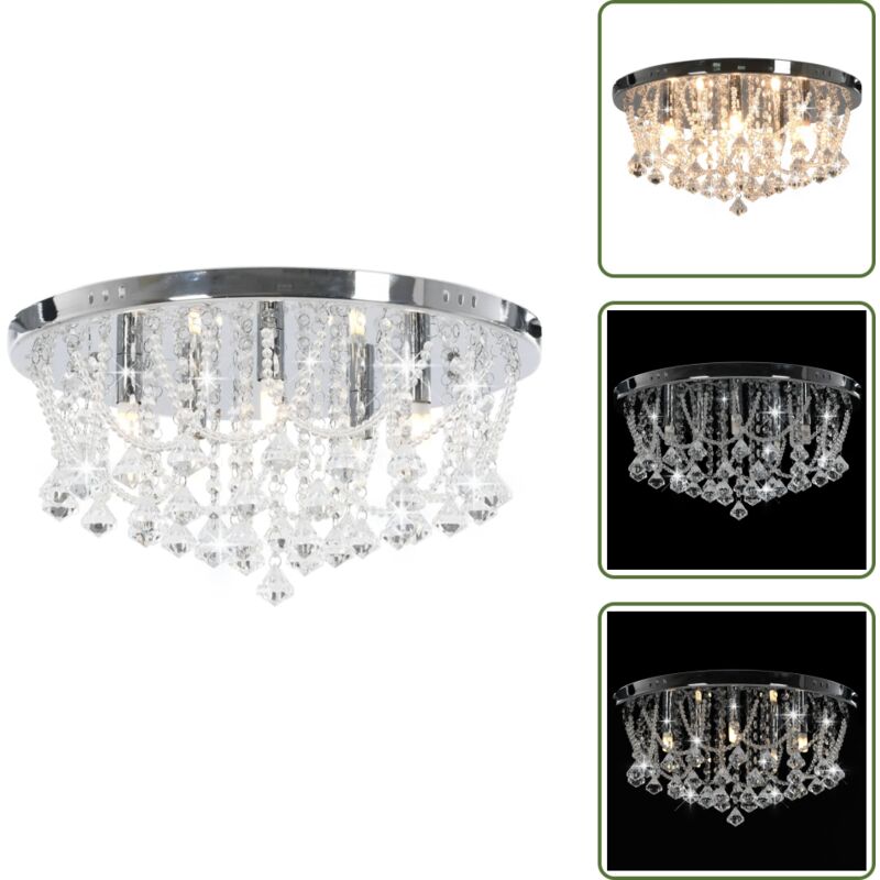 Vidaxl - Plafonnier avec perles de cristal Argenté Rond 4 ampoules G9 - Luminaire Suspendu - Plafonnier Moderne - Luminaire Salle à Manger - Lustre