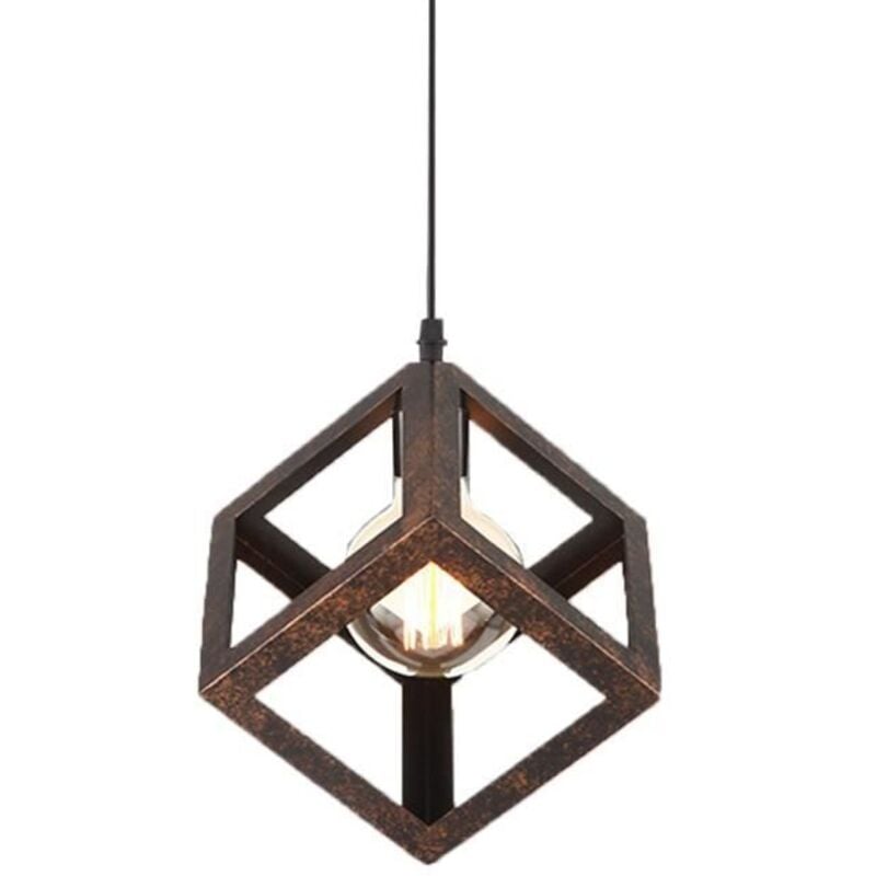 Suspension Cage Cube Lustre abat-jour Carré Contemporain Corde Ajustable Luminaire Salle à Manger,Bar (Rouille)