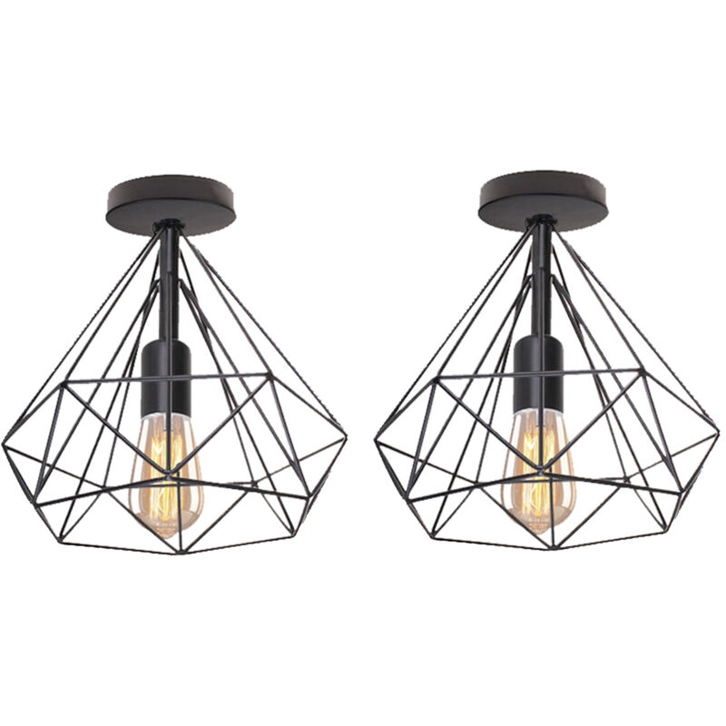 2 pack Plafonnier industrielle Retro 25cm en forme Diamant Suspension Luminaire pour Salle à Manger,Bar,Chambre (Noir)