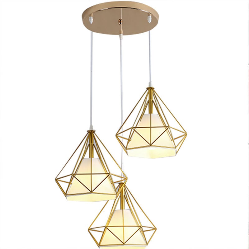 Lustre Suspension Cage en forme Diamant Industrielle,Lampe Plafonnier Corde Ajustable Luminaire pour Salle à Manger,Bar,Chambre Doré