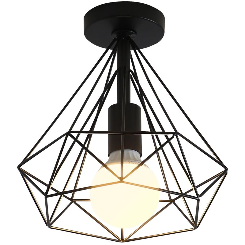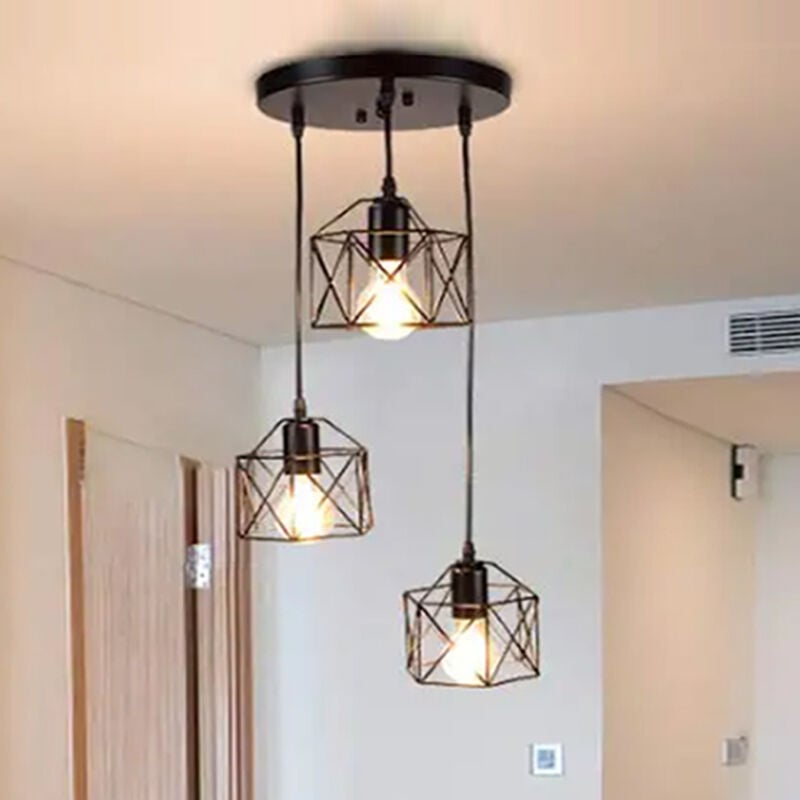 Hofuton Rétro Lustre Suspension Industrielle Cage Diamant Plafonnier Luminaire Salle à Manger Couloir Chambre Noir Style 1